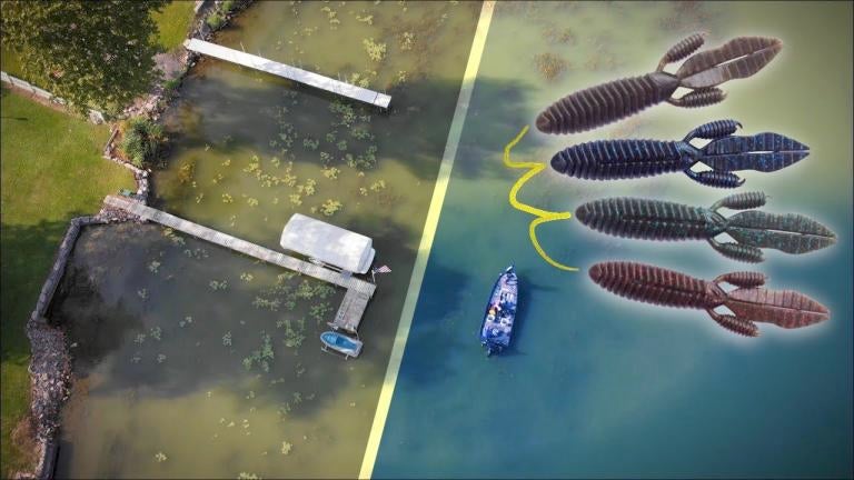 Xpress Boats pro Bill Lowen talks about how he simplifies choosing a bait to flip and pitch boat docks when bass fishing based on the water clarity. He talks about not only how he chooses the shapes and profiles he wants in a flipping bait but also color based on the color and clarity of the water he is fishing.